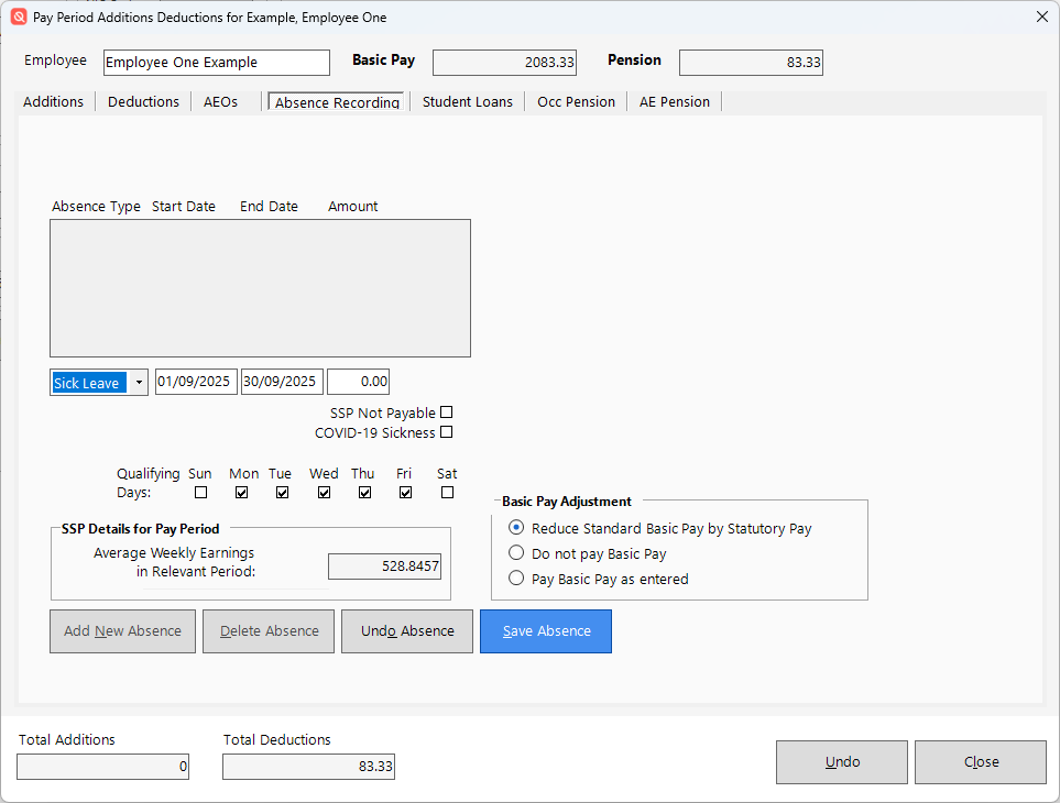 This option allows you to pay whatever you want to the employee in ‘Basic Pay’ alongside the automatically calculated SSP amount