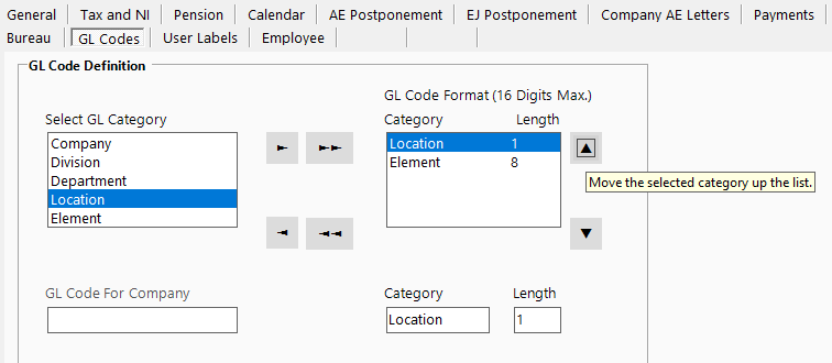 If the Company entity is selected then the GL code for the company needs to be entered. The number of characters allowed is determined by the length specified.
