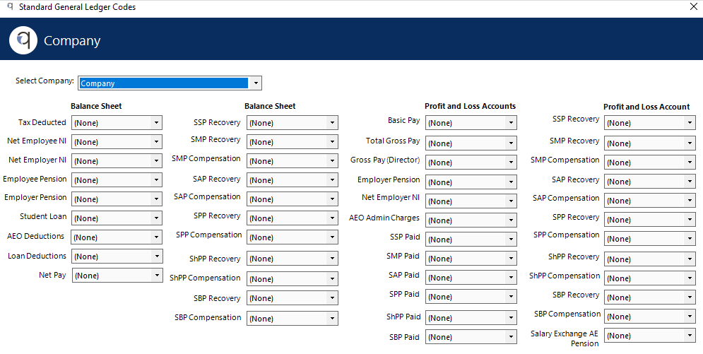 These codes are then available in Company>Standard GL Codes, and can be assigned to the Chart of Accounts