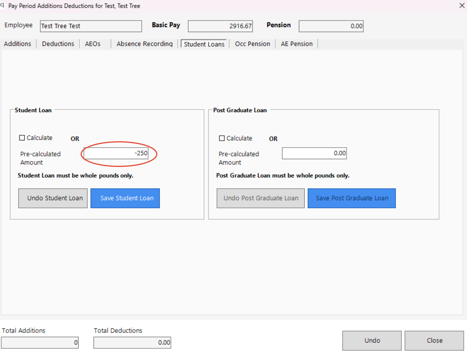 Please note that the student loan refund cannot be more than what has already been paid. The software will allow you to enter more but when an FPS is submitted, an error will be thrown.